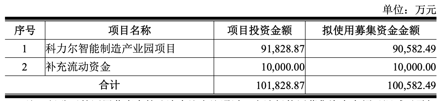 其中,公司拟使用9.06亿元募集资金投入科力尔智能制造产业园项目建设,拟将本次发行募集资金1亿元用于补充流动资金。