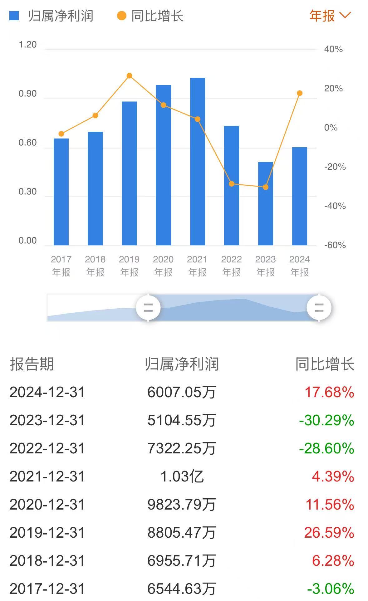 记者发现,2022年及2023年,科力尔净利润均出现下滑,分别同比减少28.6%、30.29%,2024年回升17.68%至6007.05万元,但净利水平仍低于2022年,甚至比不上上市当年(2017年)的6544.63万元。