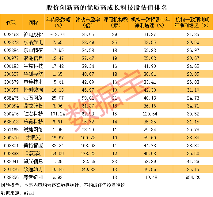 创历史新高的优质高成长科技股曝光富明配资,19股上榜创历史新高的优质高成长科技股曝光,19股上榜